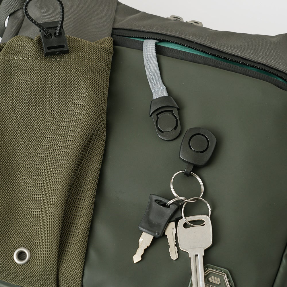 鞄の中で迷子になりがちな鍵も、収納場所を決めれば見失いません。着脱可能なバックル型なので、取り出しもスムーズ。