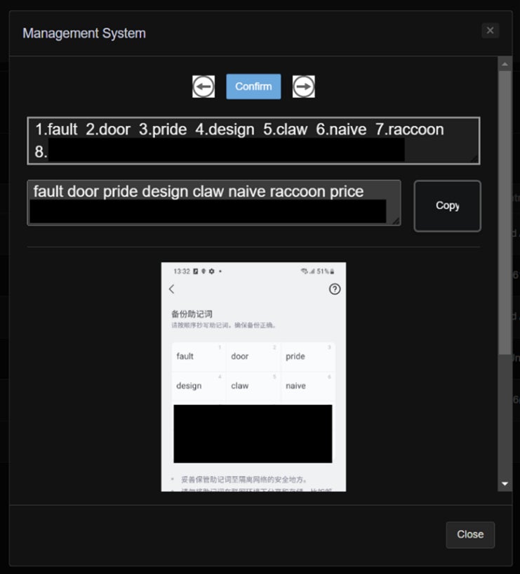 3. 暗号資産を管理するアプリやソフトウェアを狙う:管理画面を調べると、攻撃者の主な目標は、暗号資産アプリのニーモニックキーの入手であることが分かりました。これは、被害者の暗号資産にアクセスし、不正利用に重きを置いていることを示唆しています。