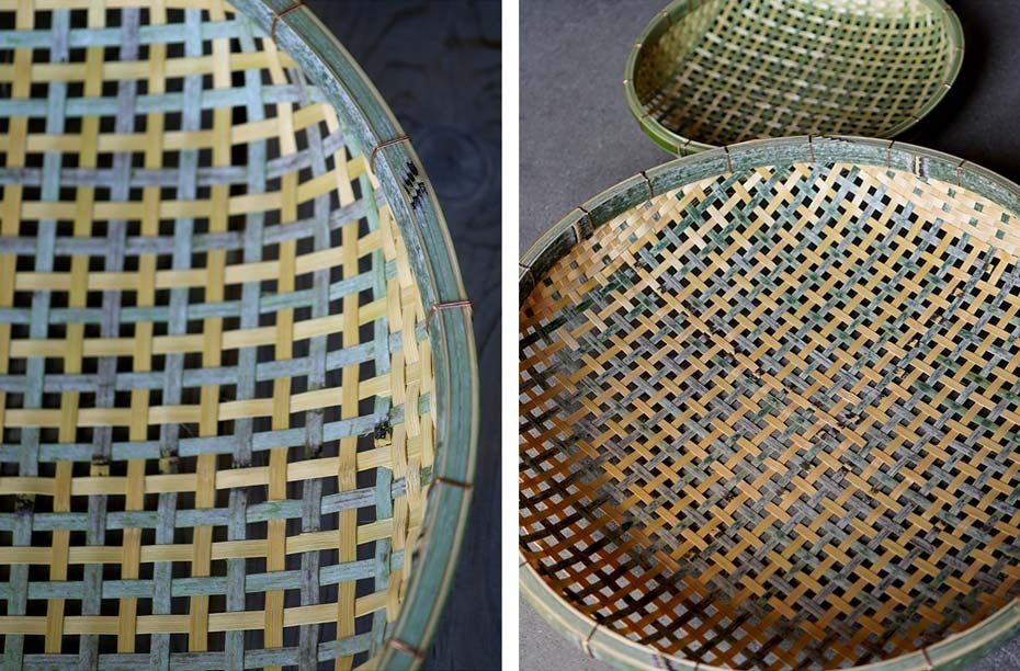 旬のいい時期に切り出した竹を使用し、伝統の技術を継承しながら、竹の荒割り・竹ヒゴ取り・竹編みまで、一貫した手仕事で作られています。