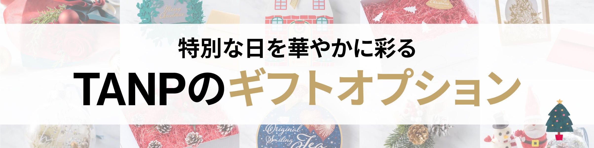 TANPでは数多くのギフト商品に加え、ギフトを華やかに彩る「ギフトオプション」をご用意しています。メッセージカードの他、ギフトボックスや巾着タイプのラッピング等もご用意しておりますので、是非ご利用くださいませ。