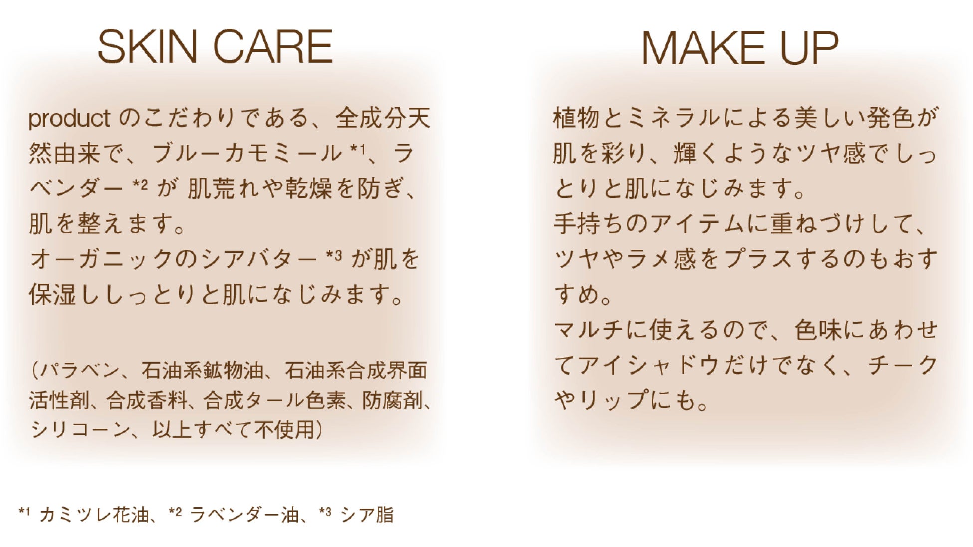 "SKIN CARE=MAKE UP"ケアする、色づく、コスメバター
