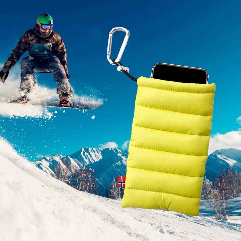北欧ノルウェー発のサスティナブルなRDS認証ダウンを使用した【THOQ】ダウンケースでスマートフォンを保護することで寒さによるバッテリーの消費を防ぐ、冬のアクティビティに最適なアイテムです。