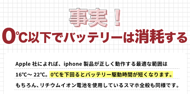 - 【0℃を下回るとバッテリーの駆動時間が短くなるのです】