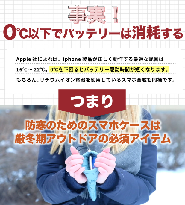 【全世界250,000個売上】今年の厳冬からスマホを守る大人気アイテム!寒さによるバッテリーの消耗を防ぐお洒落なスマホダウン【THOQ(ソック)】今シーズンの大雪予報に備え追加生産決定!!