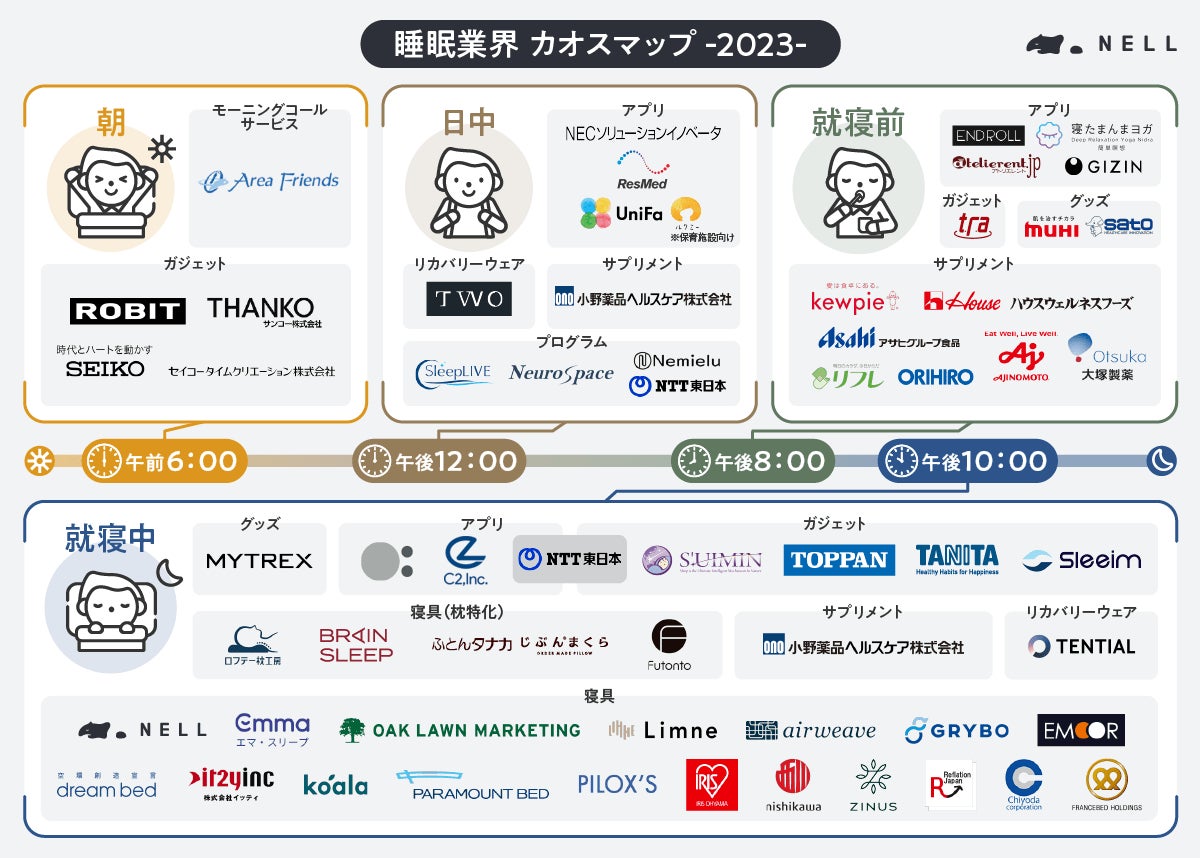 日本最大級の睡眠メディア『WENELL』が、「睡眠業界 カオスマップ -2023-」を公開。就寝中だけでなく起床中にも広がる睡眠市場。