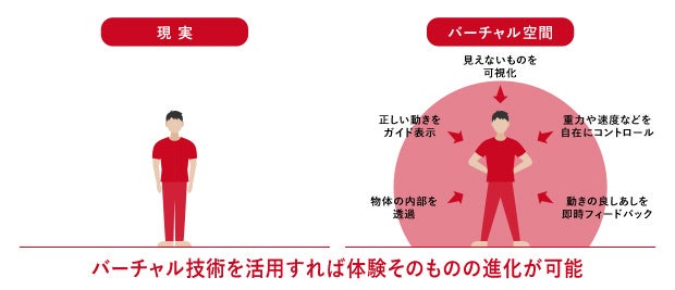 ▼バーチャル空間ではテクノロジーによる様々なアシストを受けながらの体験が可能