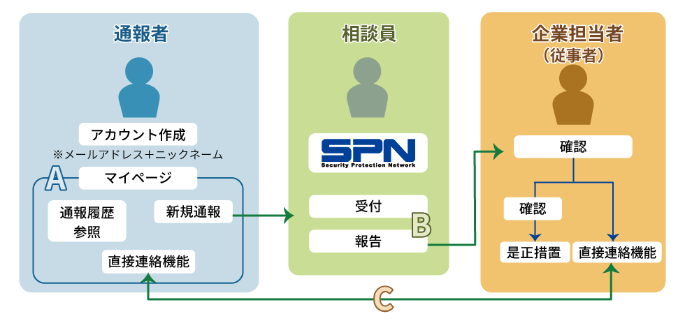 - 特長③ 企業と通報者との直接連絡可能(C)