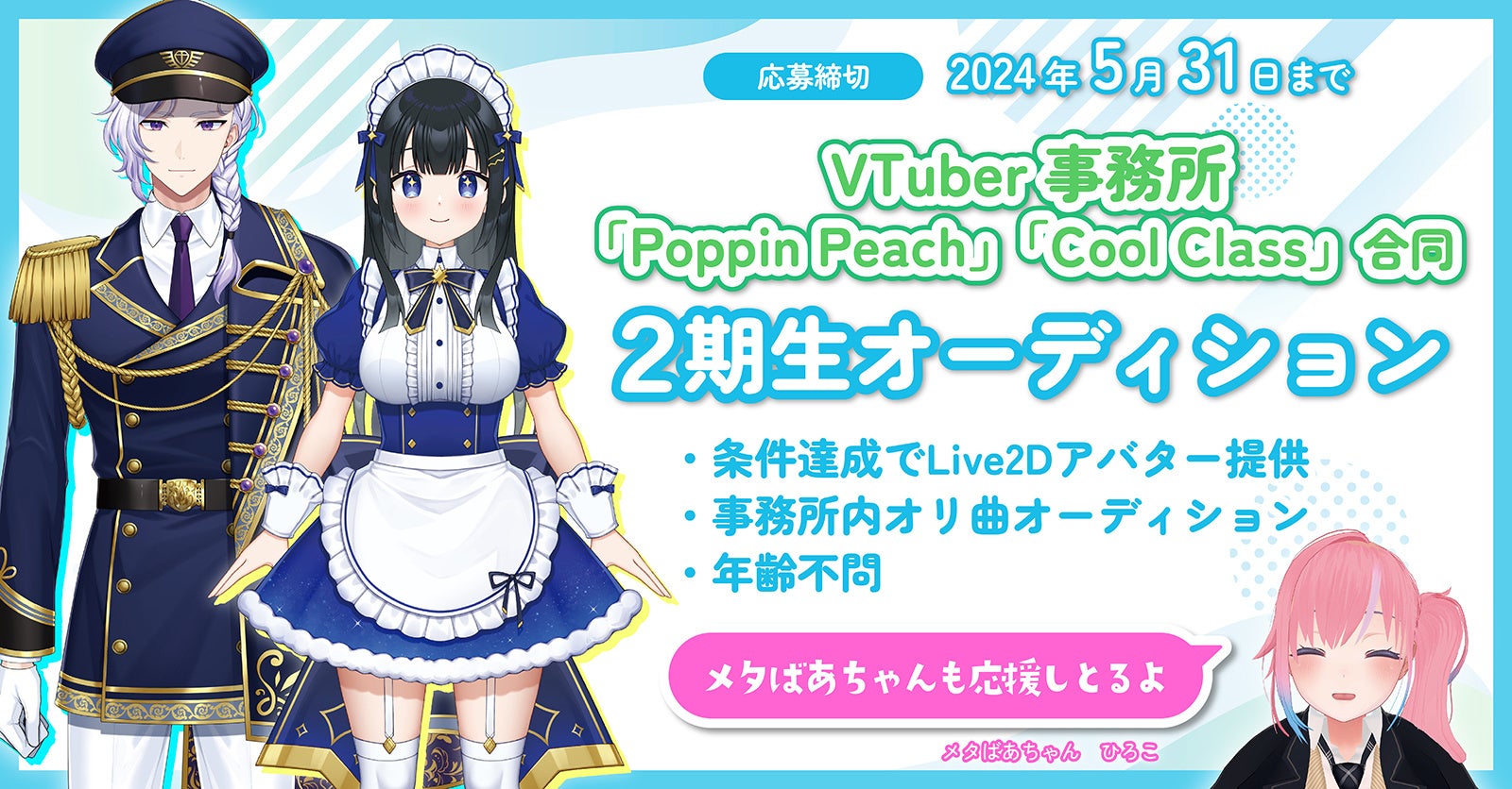 VTuber事務所「Poppin Peach」「Cool Class」合同2期生募集オーディション開催!アジアを中心にオリ曲で世界へ