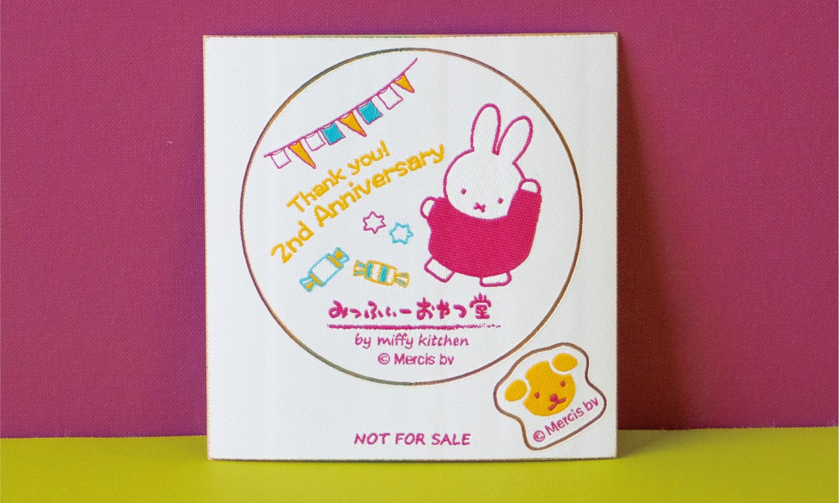 そして2024年3月30日(土)からは、みっふぃーおやつ堂店舗にて、合計 4,000円以上お買い上げいただいたお客様対象に、記念ノベルティとして織ステッカーをプレゼント!