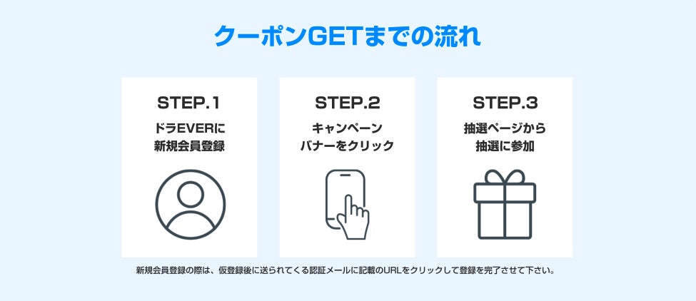 ・当選後、ドラEVERの会員マイページにログインしていただき当選URLにてクーポンバーコードを配布いたします。そちらのクーポンバーコード画面をレジにて会計時にご提示下さい。