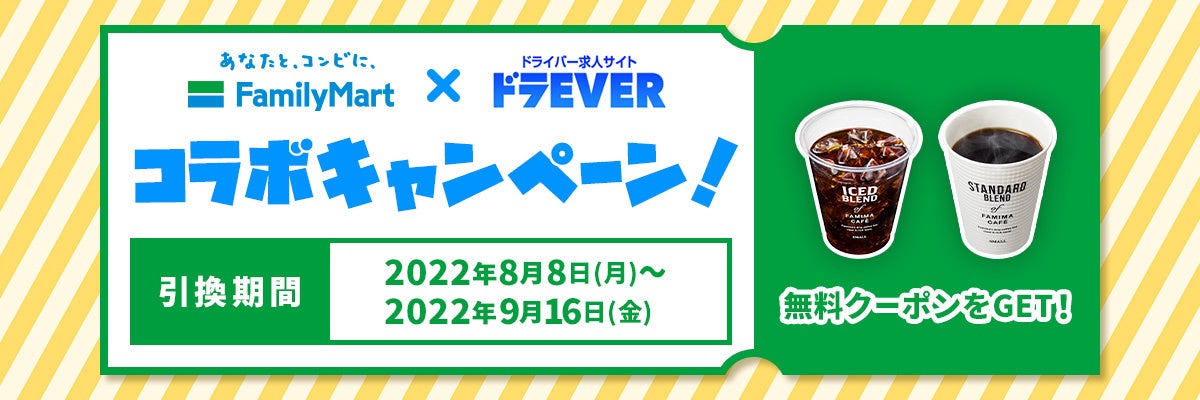 株式会社ドラEVER(本社:東京都港区、代表取締役:岡野照彦)は、2022年8月8日(月)から2022年9月6日(火)までの期間中にドラEVERに新規会員録をしてくれた方の中から、抽選で合計15, 000名様にファミリーマートで使える無料引換券をプレゼントする「ファミリーマート」と「ドラEVER」のコラボキャンペーン第二弾を実施いたします。