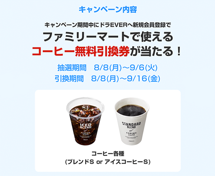 ◆「ドラEVERに新規会員登録でファミリーマートで使える無料引換券をプレゼントキャンペーン」