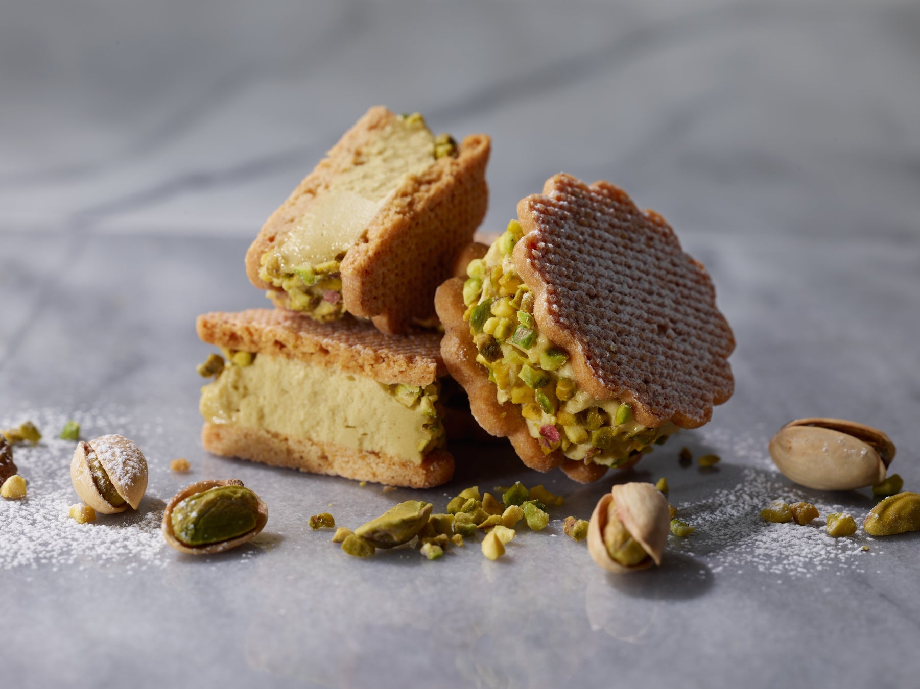 ピスタチオバタークリームにローストしたピスタチオを贅沢にあしらった、薫り・コク・食感、ピスタチオの特徴を存分に味わえるサンドクッキーです。