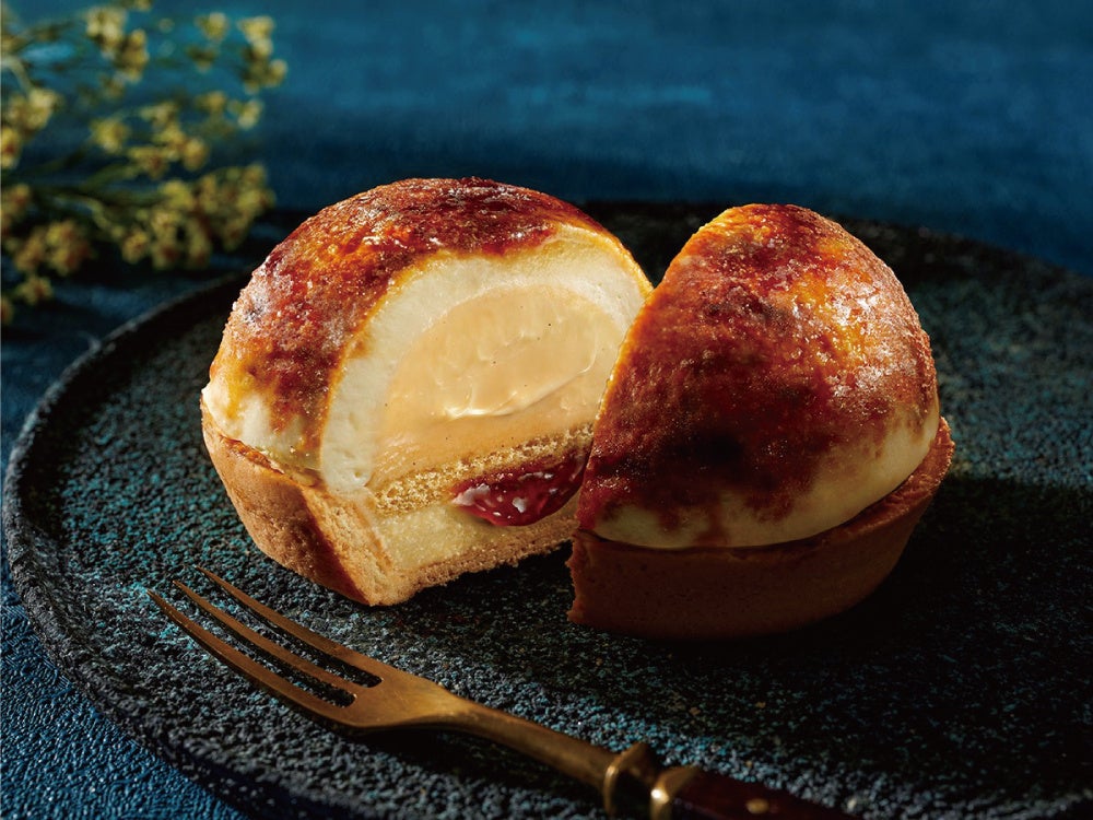 ほろ苦いカラメルソースをとろっと閉じ込めたタルトにのせて、直火でひとつひとつ丁寧にブリュレしました。美味しさが溢れだす生ブリュレタルトです。
