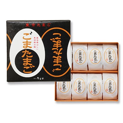 黒ごまのペーストと黒ごまあんをカステラ生地で包み、ホワイトチョコレートでコーティングしたかわいいたまご型のお菓子です。