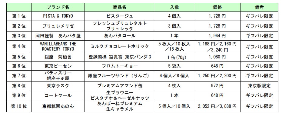 また、約200品の定番東京土産が揃う「ギフトキヨスク 東京ギフトパレット店」の人気お土産ランキングも発表します。