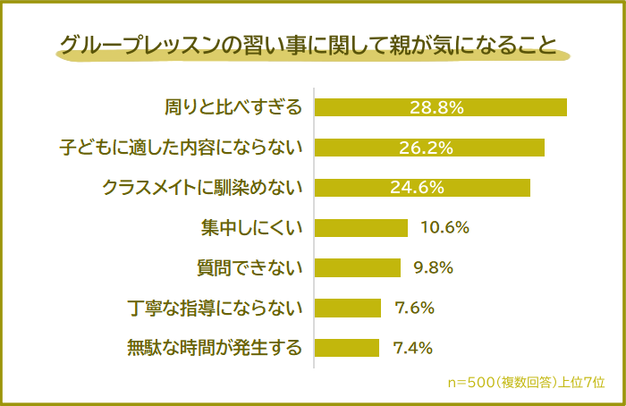 グループレッスンの習い事に関して親が気になることは「周りと比べすぎる」