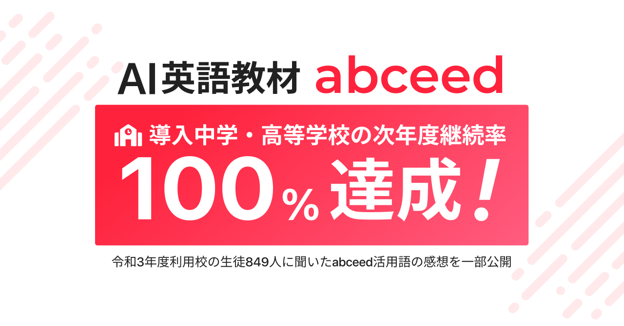 AI英語教材abceed、令和3年度から導入開始した中学・高等学校の次年度継続率100%! 令和3年度利用校の生徒849人に聞いたabceed活用後の感想を一部公開