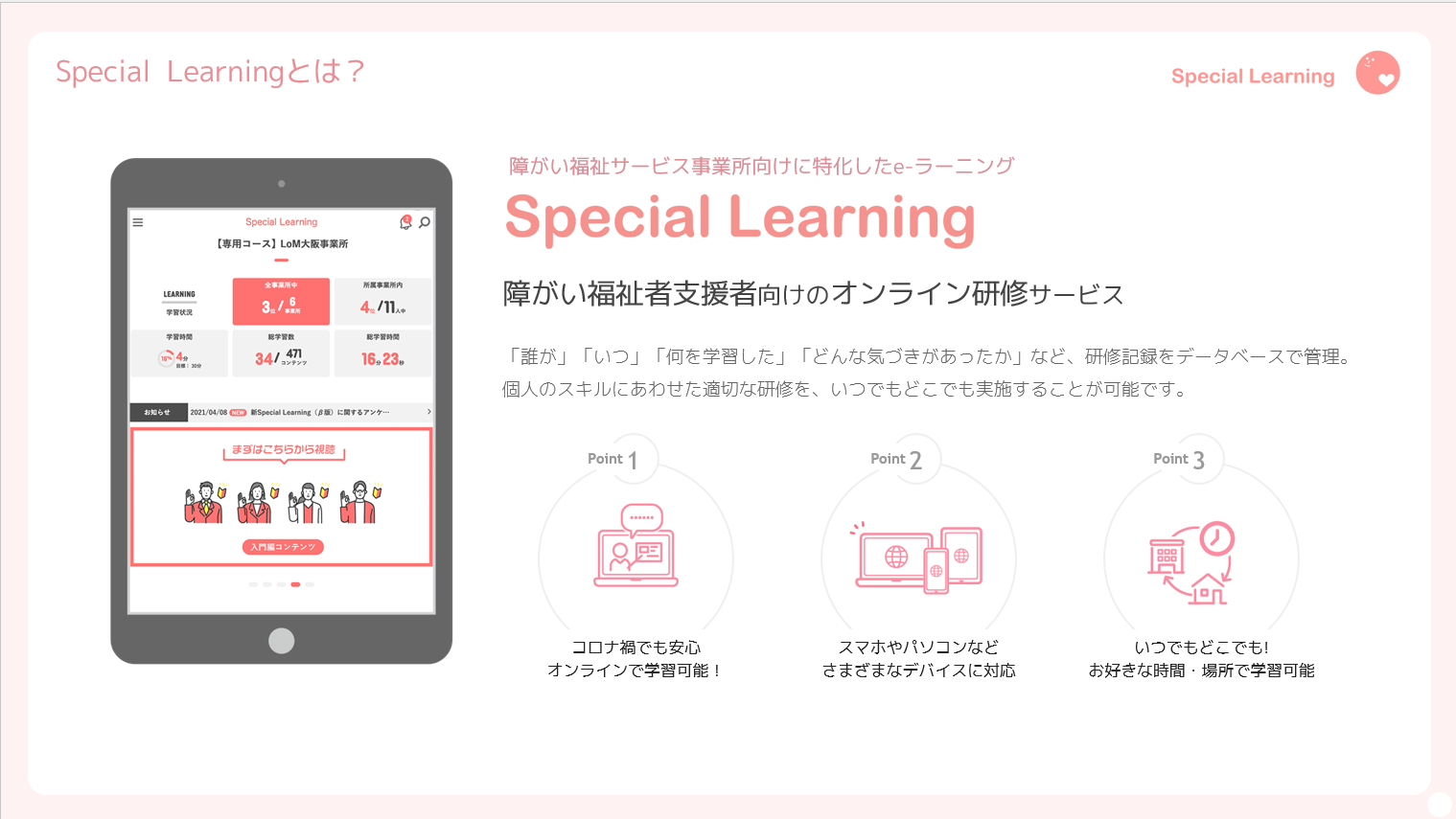 事業内容:障がい福祉専用eラーニング研修「Special Learning」(スペシャルラーニング)