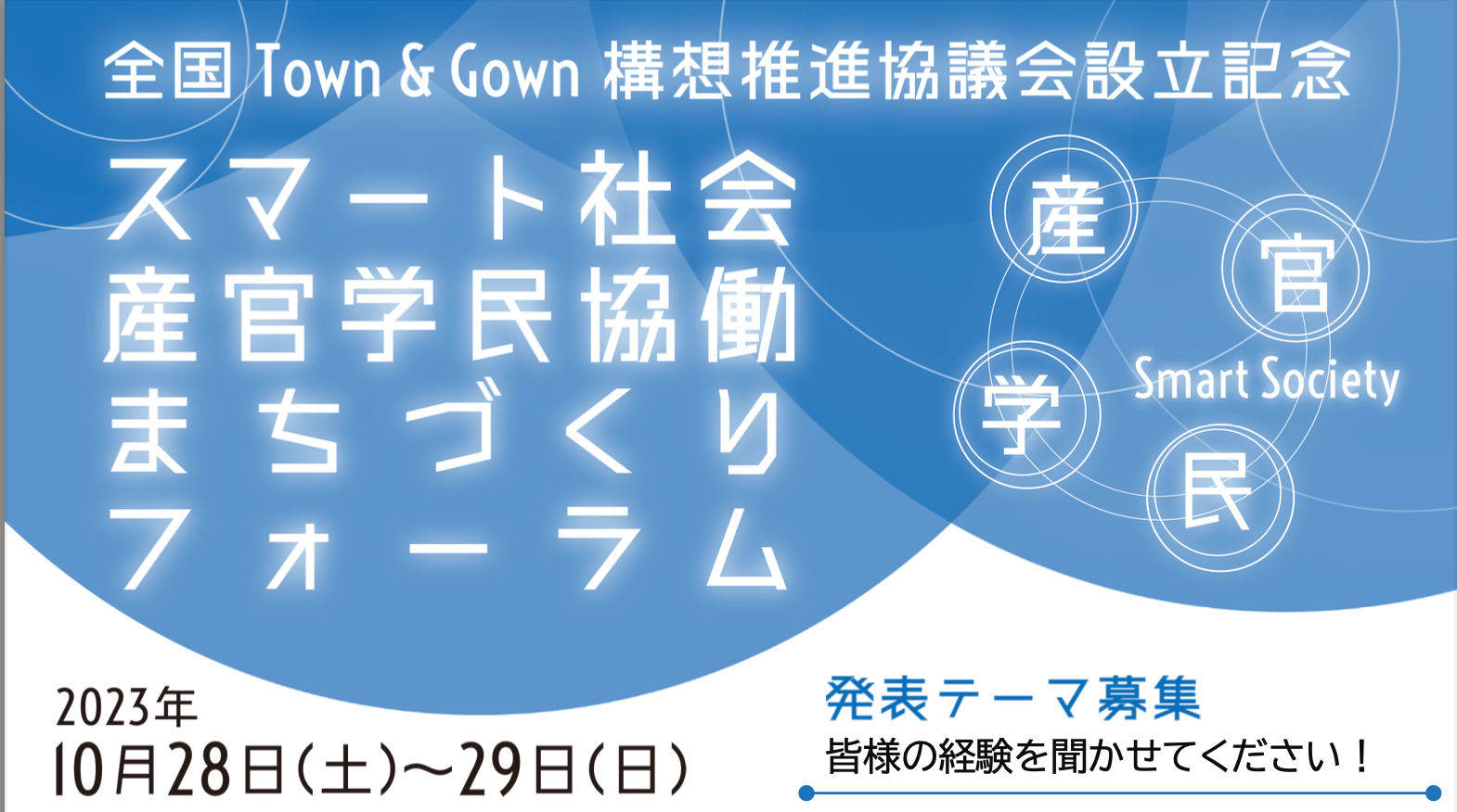 2023年10月28日(土)・29日(日)に、広島大学東広島キャンパスにて開催される「スマート社会産官学民協働まちづくりフォーラム」の事例発表プログラムにて下記の通り口頭発表いたします。