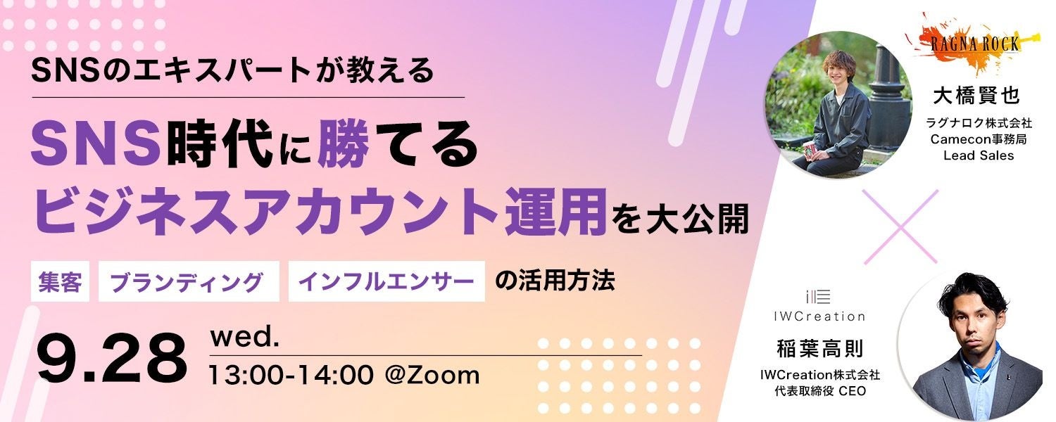 【9/28(水)13時〜】ラグナロク×IWCreation株式会社 オンラインセミナーを開催!集客・ブランディング・インフルエンサーの活用方法を大公開!