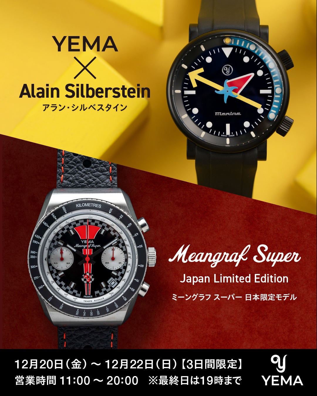 フランスの老舗時計ブランド「イエマ(YEMA)」が、新宿マルイ メンにて期間限定のポップアップストアをオープンいたします。