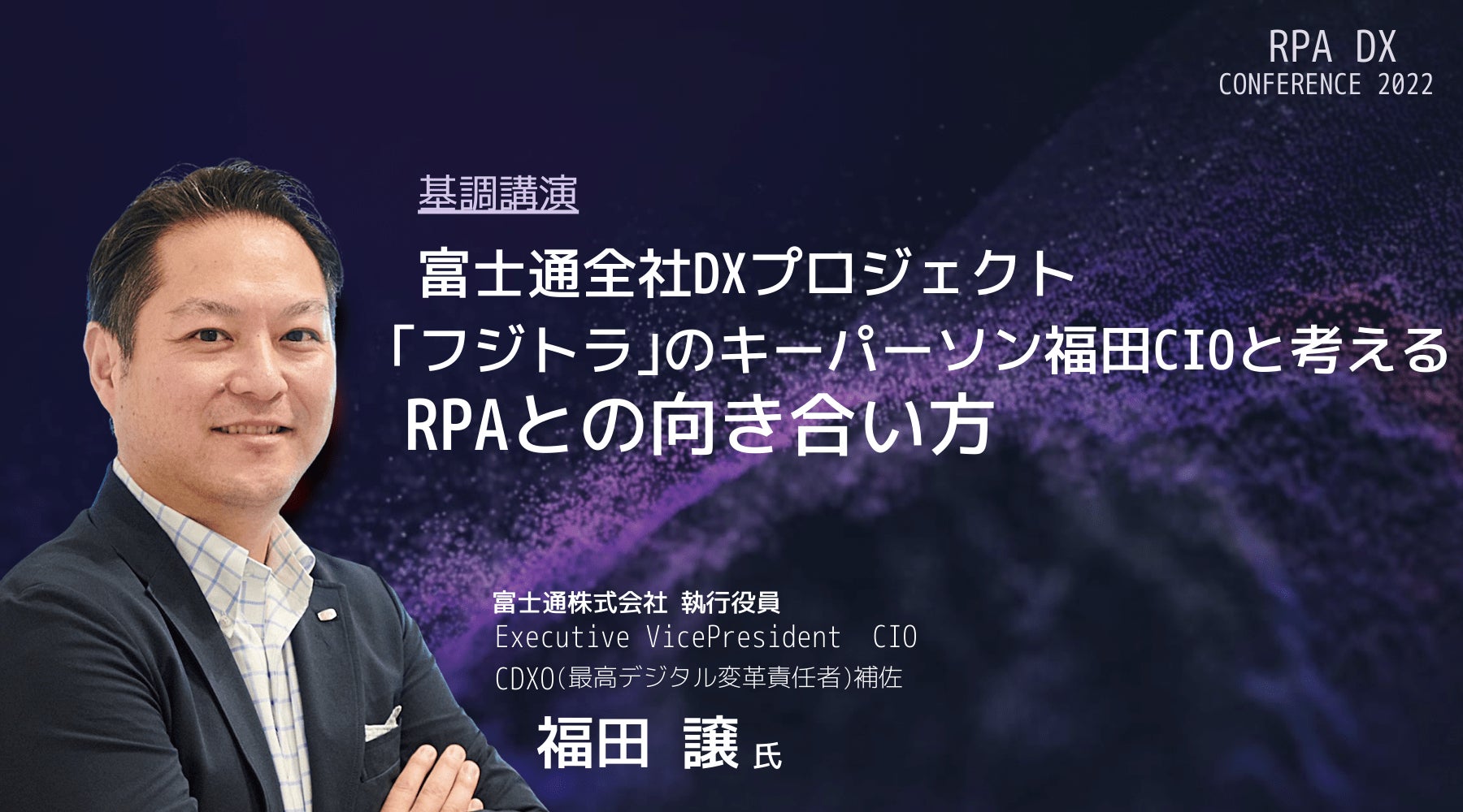 - 基調講演1 富士通全社DXプロジェクト「フジトラ」のキーパーソン福田CIOと考えるRPAとの向き合い方 10:10-10:50