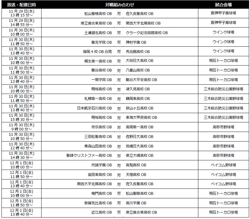 をお招きし、スポーツライブ+にて無料生中継、さらに11 月29 日(水)~ 12 月1日(金)に行われる交流戦全試合をスカパー 番組配信・プロ野球セットアプリにて無料生配信でご覧いただけます。