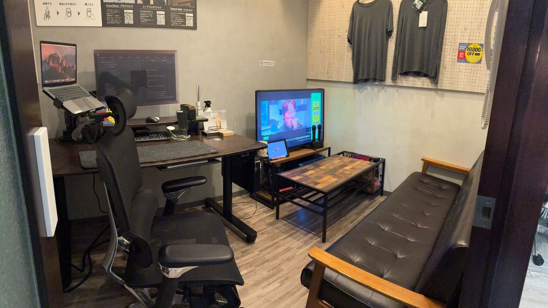 東梅田駅徒歩1分の好立地で、出張やリモートワークの拠点としても活用可能。電動昇降デスク×最新チェアの組み合わせで、自分だけの快適オフィス環境をリアルに再現