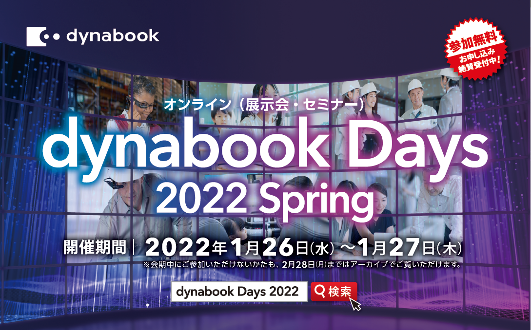 ~デバイスと次世代DXソリューションを提案するオンライン展示・セミナー~『dynabook Days 2022 Spring』オンラインセミナー開催!