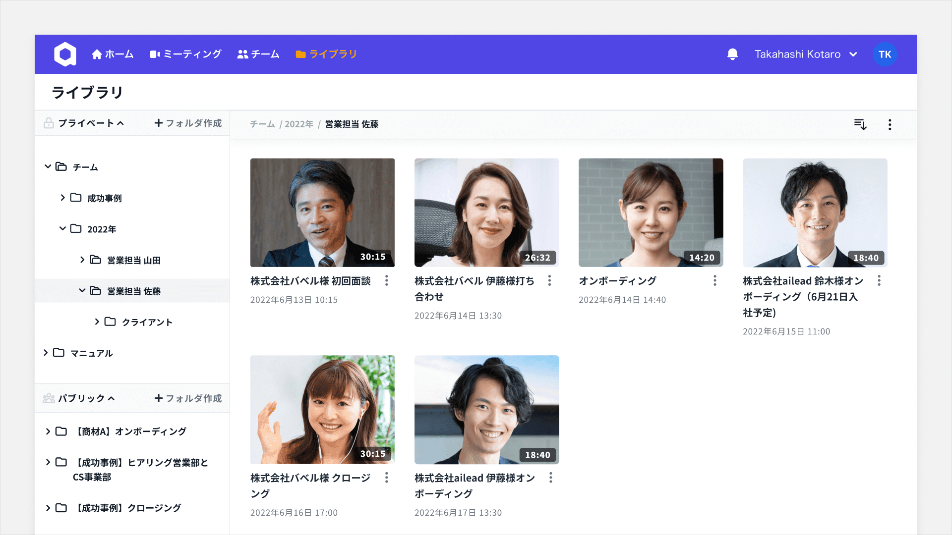 先輩営業による過去商談をフォルダにまとめて新人営業が視聴することで、早期に商談ノウハウを習得し、さらに顧客理解を深めることが出来ます。