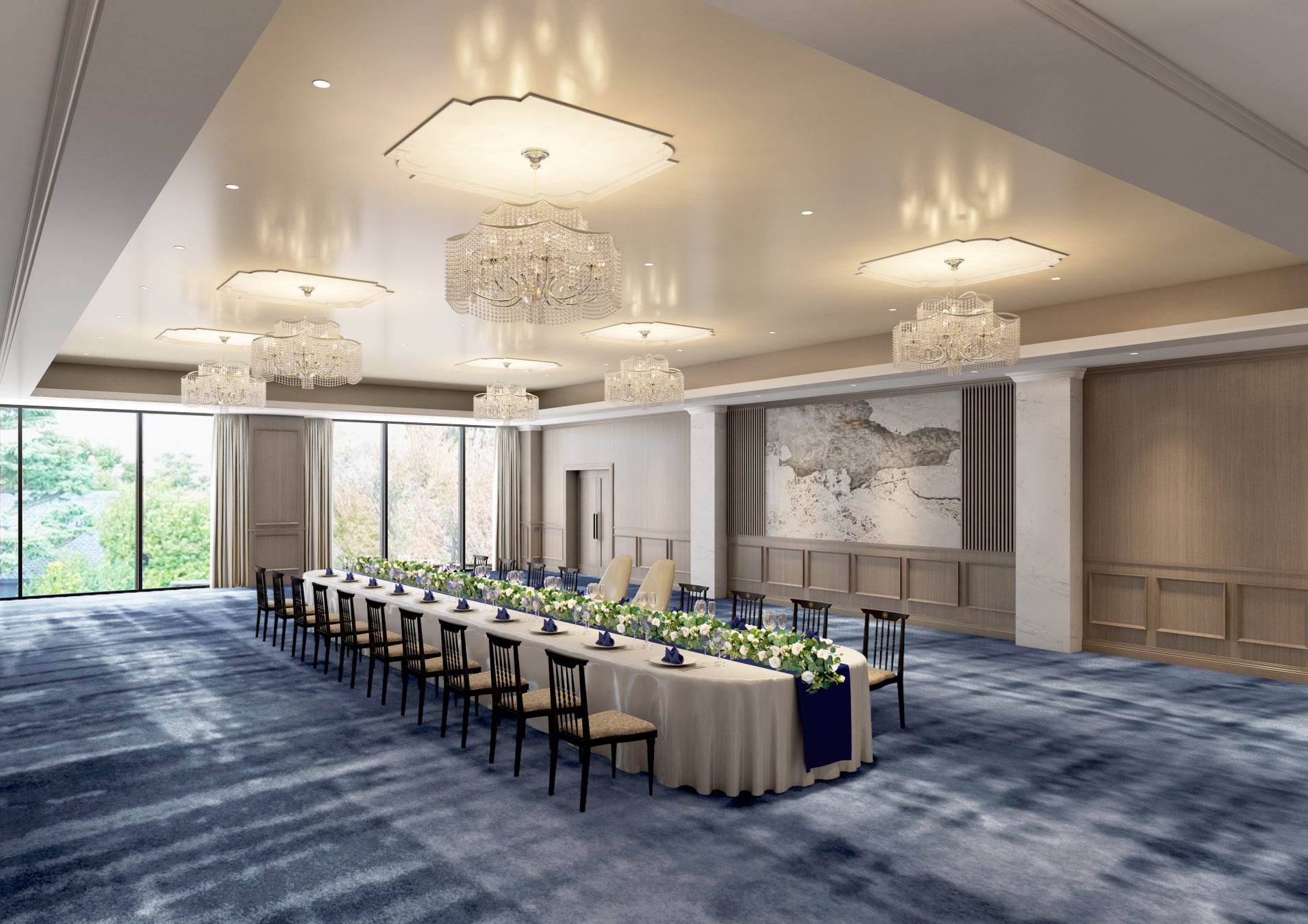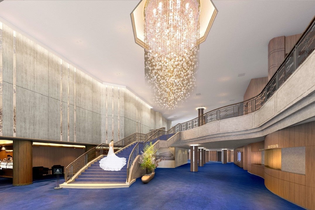 また、バンケット「孔雀」以外にも、メインエントランスロビーやホワイエといったパブリックスペースをリニューアルいたします。今夏、よりクラス感のあるデザインとなる迎賓施設で、おふたりの特別な一日をお過ごしください。