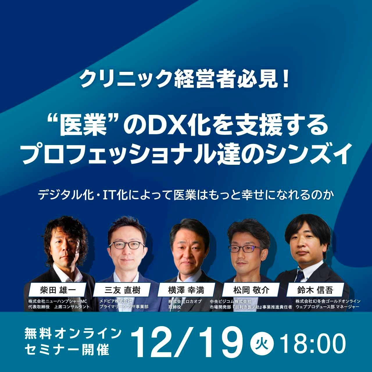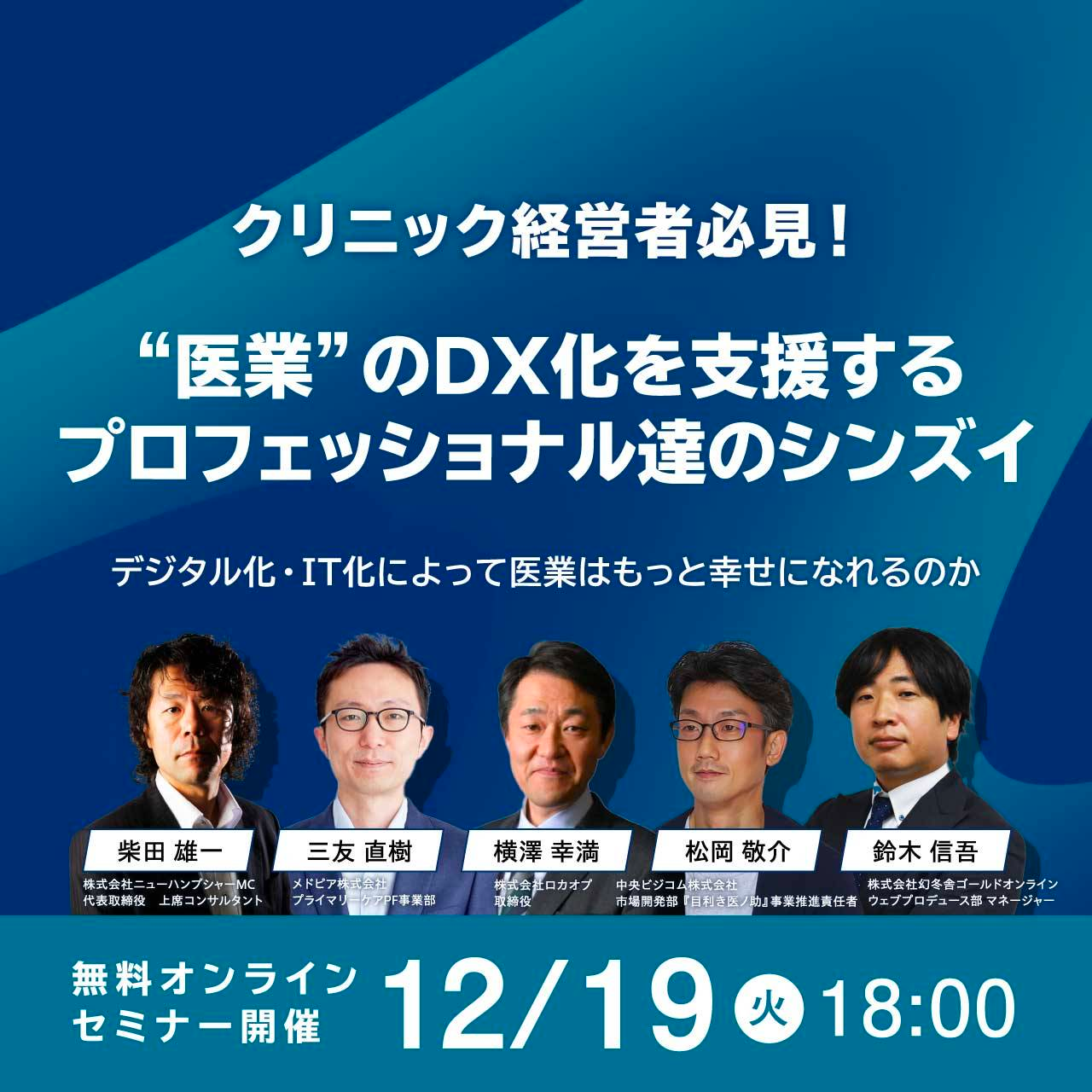 本セミナーは、医療業界におけるデジタル化・IT化の最前線を知りたい方、クリニック経営の効率化や集患に関心のある方にとって、貴重な学びになる絶好の機会です。