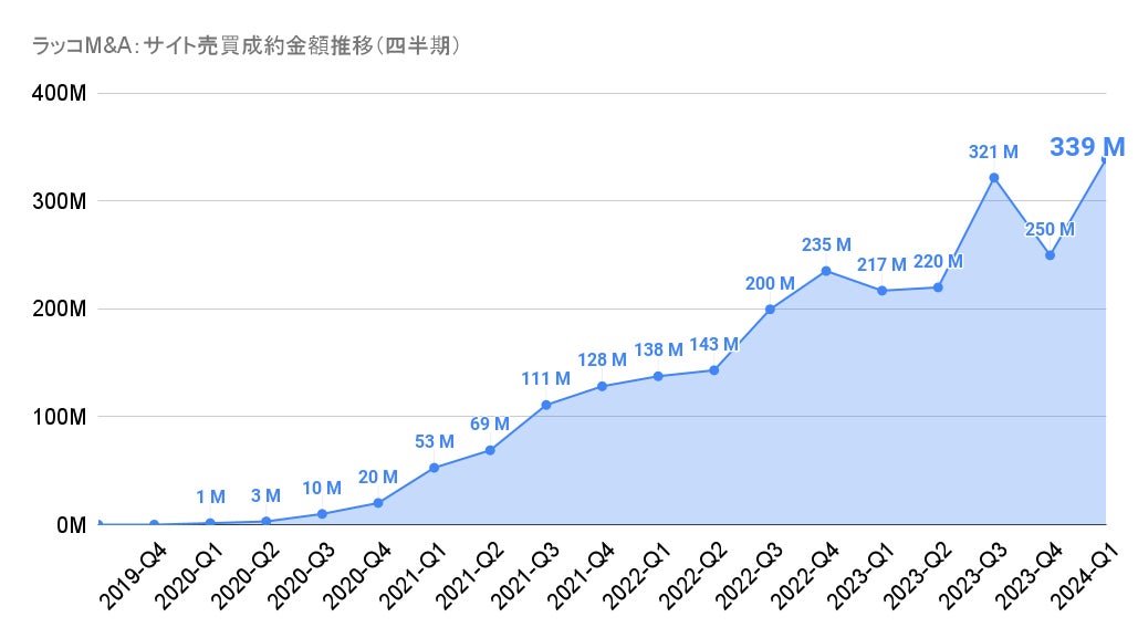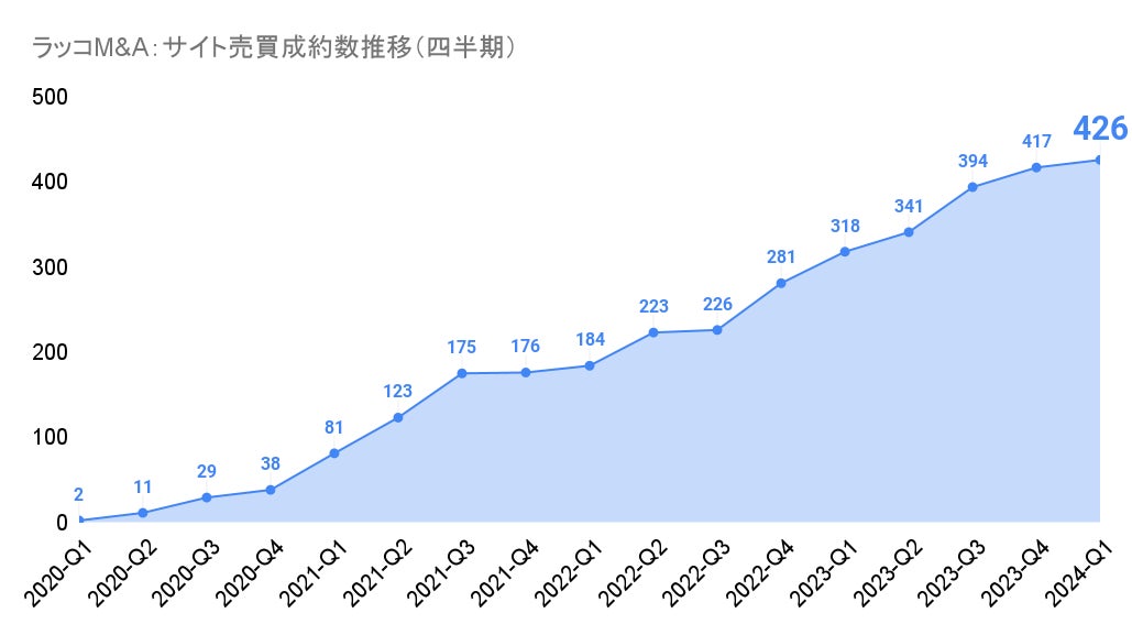 ラッコ株式会社(福岡市中央区)が運営するサイト売買プラットフォーム「ラッコM&A」は、2024年第1四半期(2024年1月〜3月)の実績において、成約数426件、成約金額338,720,159円を記録しました。成約数・成約金額とも、これまでの最高記録を更新しています。2024年3月には、月あたりの成約数でも過去最高の161件を達成しました。