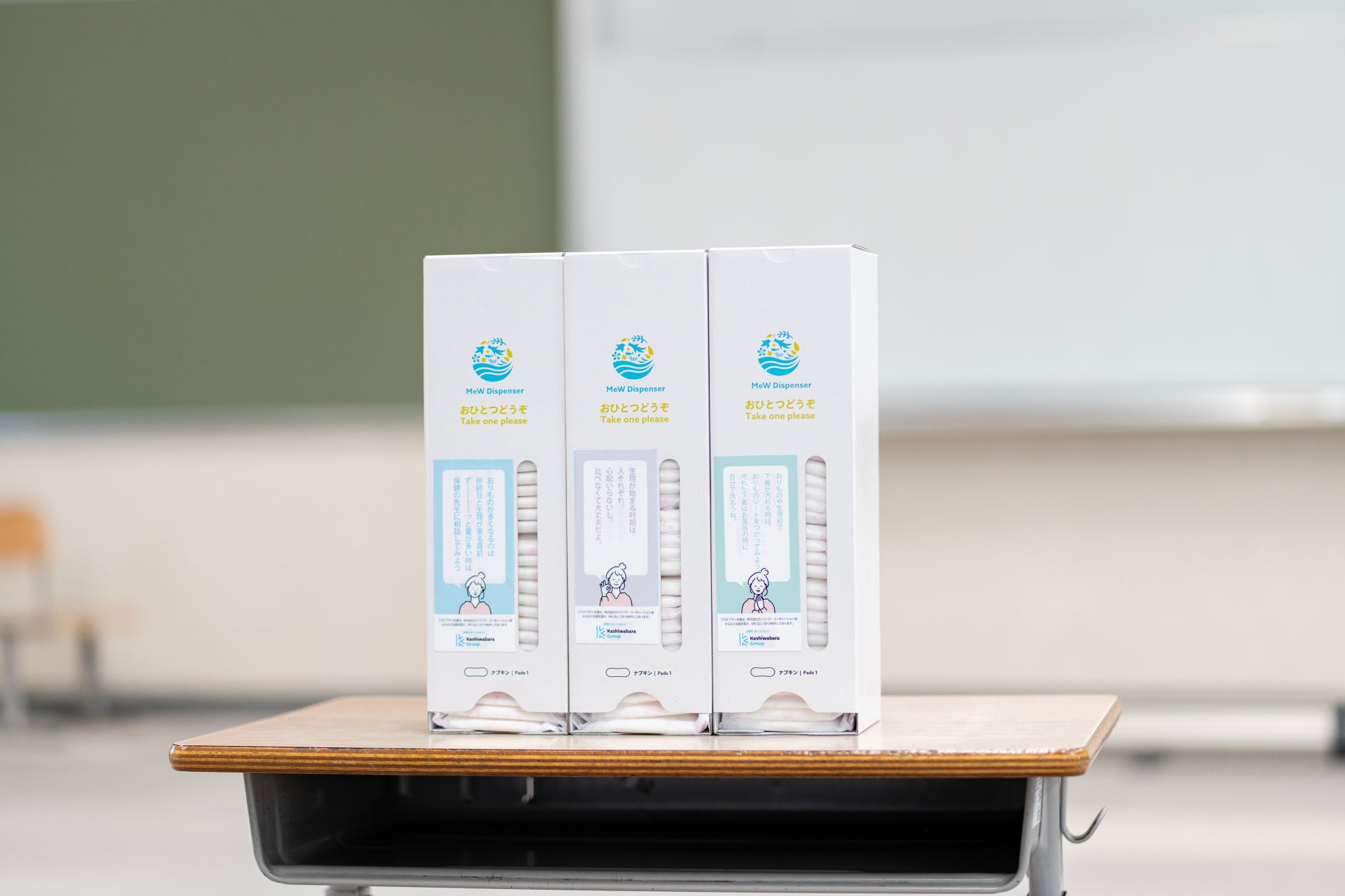 今回寄贈した生理用ナプキンは、産婦人科医監修の月経に関するメッセージが添えられた収納ボックスに入れて設置されており、子どもたちが自然と月経について学びながら、必要なときに安心して使える環境が整えられています。