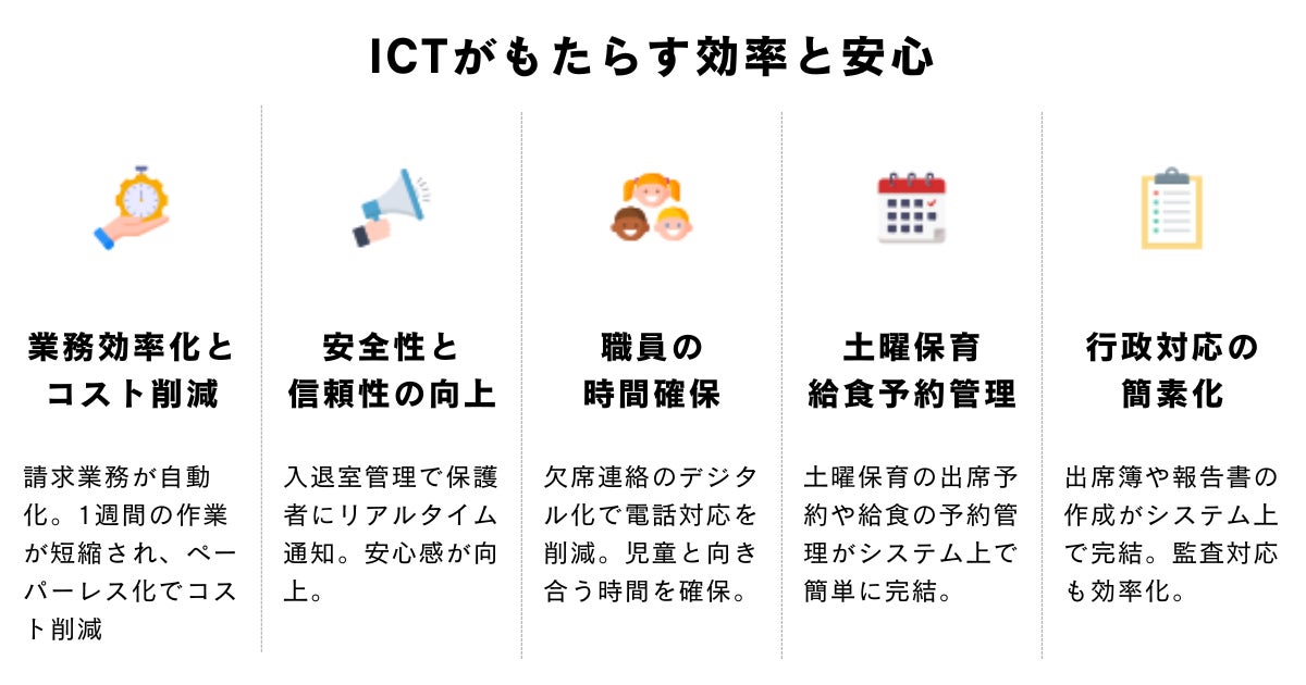 「学童保育支援システム」の導入後、横川学童保育所では、業務効率化や保護者との信頼構築など、さまざまな成果が得られました。以下に具体的な効果を挙げます。