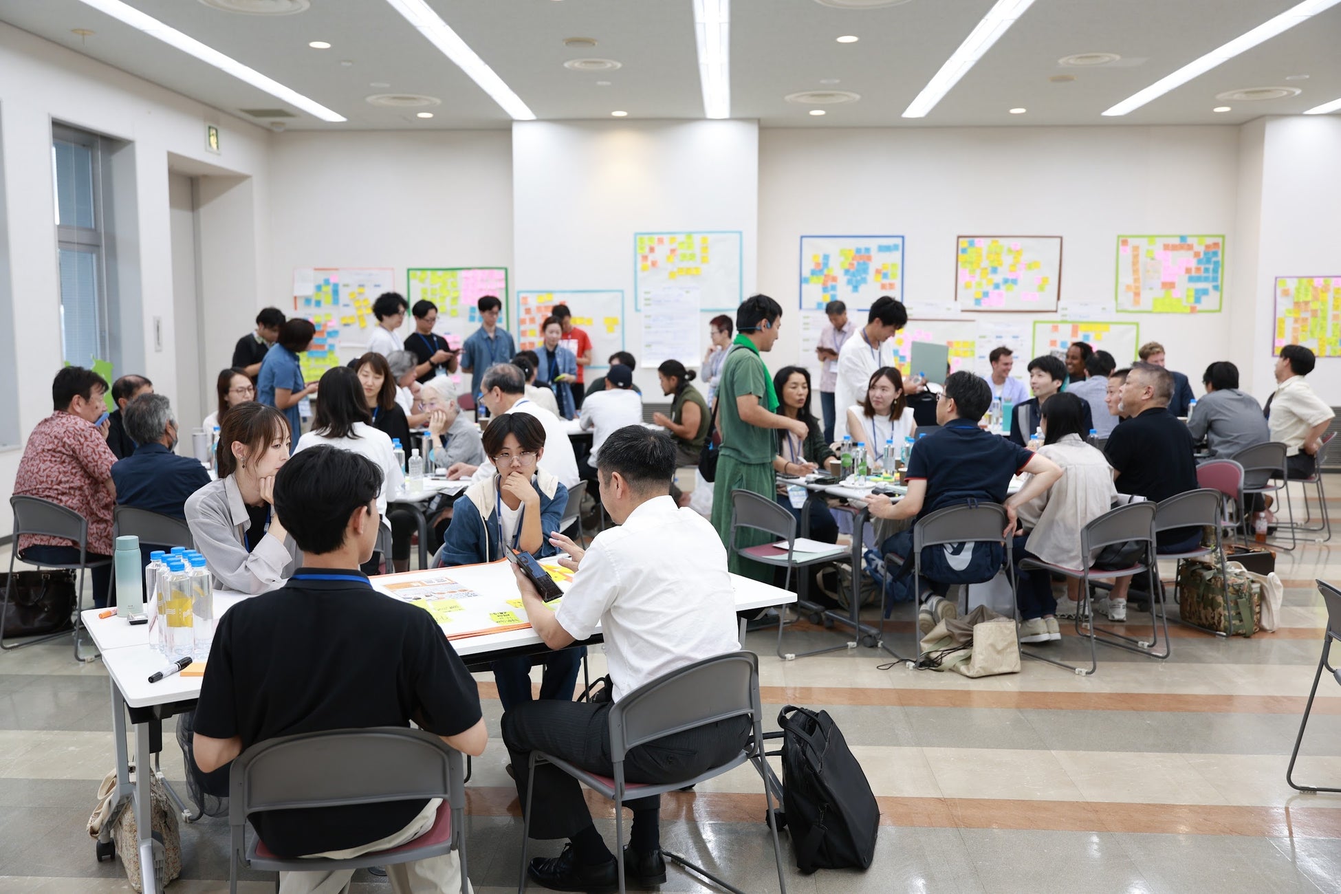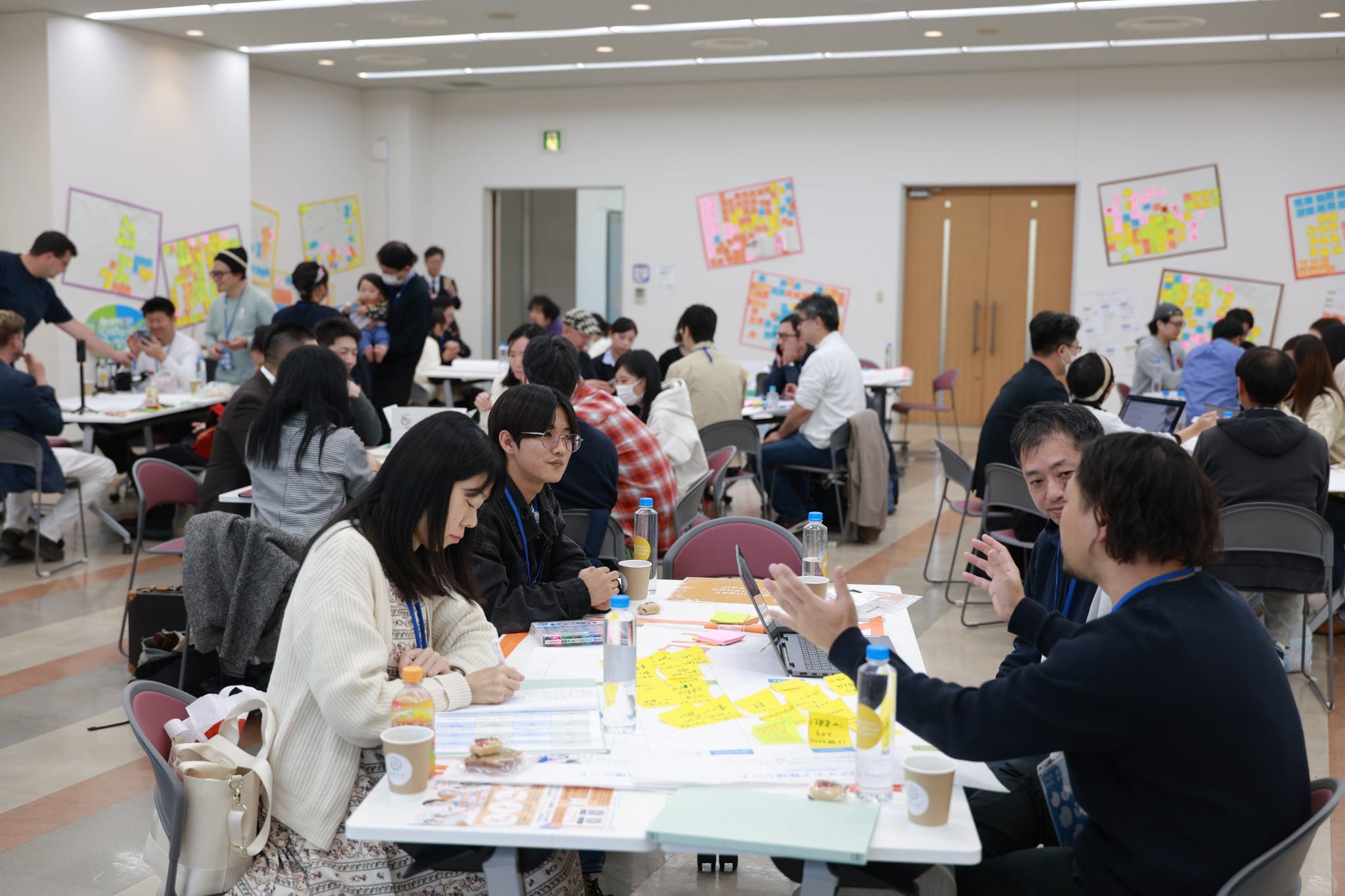 会場である日立地区産業支援センター(HITS)に過去4年間の#1史上最多となる91名の方々が大集結。茨城県内外はもちろん海外からの参加者でにぎわい、2025年シーズンのスタートを盛大に迎えることができました。会場には、昨年のリーダーやリピーター、今回が初めてのチャレンジャー、さまざまな人たちが集まってリーダーのテーマを一緒に深掘り。まちのこ団によるあそび場で汗だくになって遊ぶ子どもたちも!日本語・英語・フランス語が飛び交う会場は活気で溢れていました。