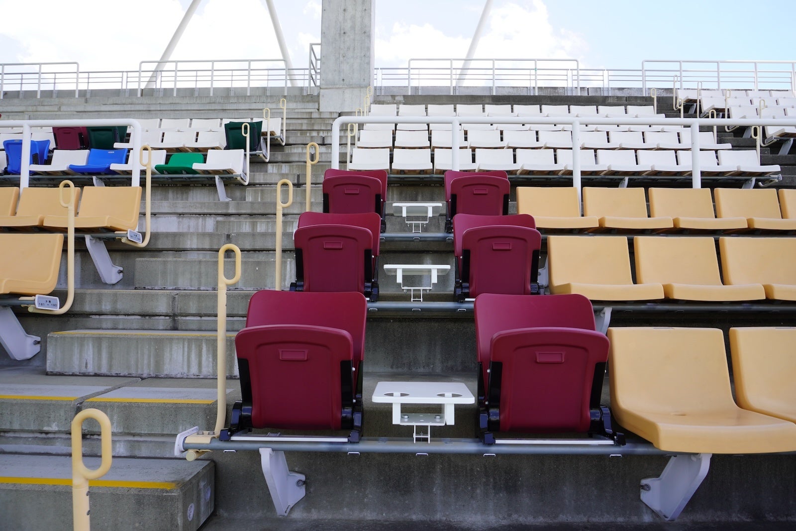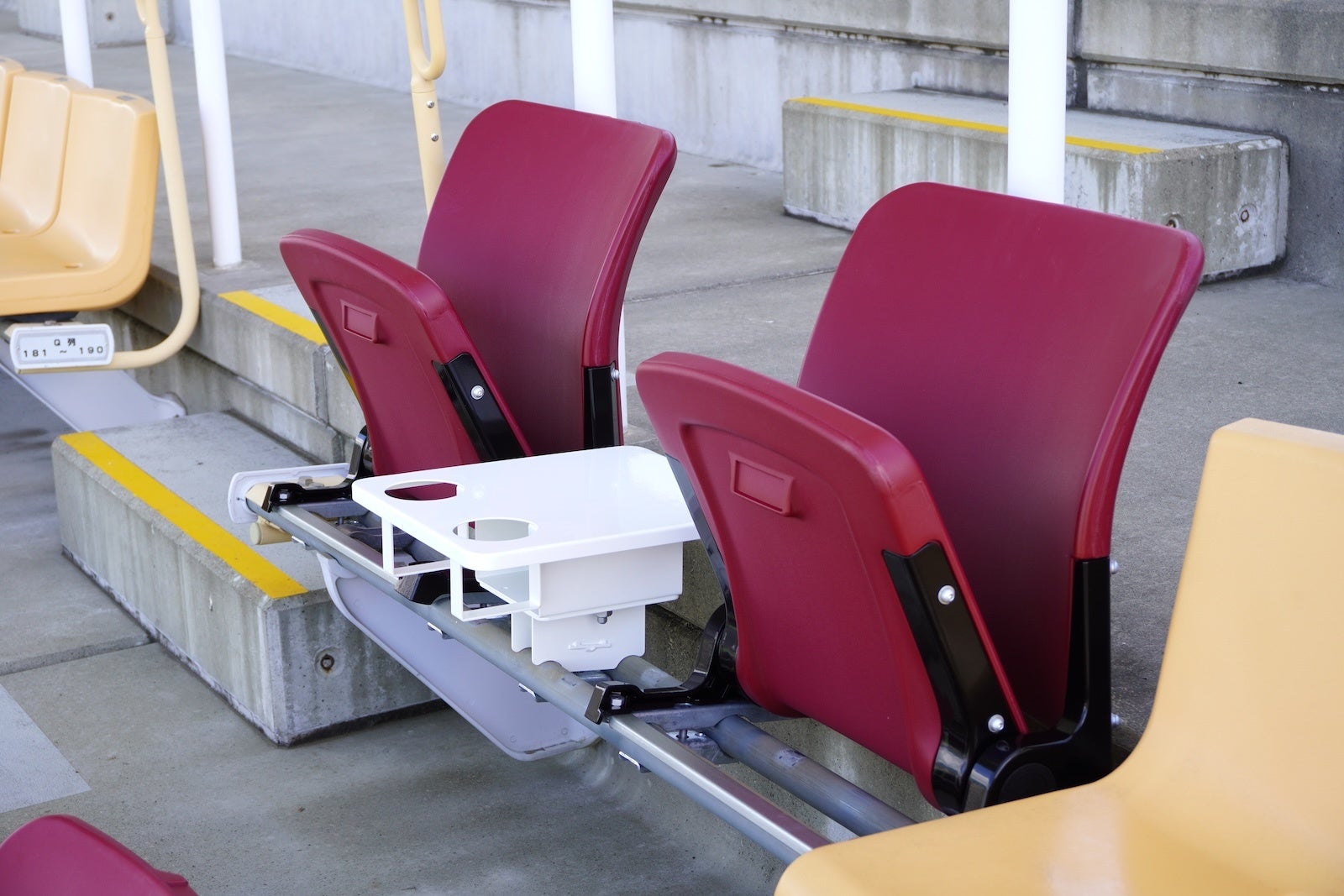 本ペアシートは、跳ね上げ式の座席の席と席の間にドリンクやフードなどを置くことができるテーブルが付いており、ご家族やカップル、ご友人、親子でのご観戦にオススメです。