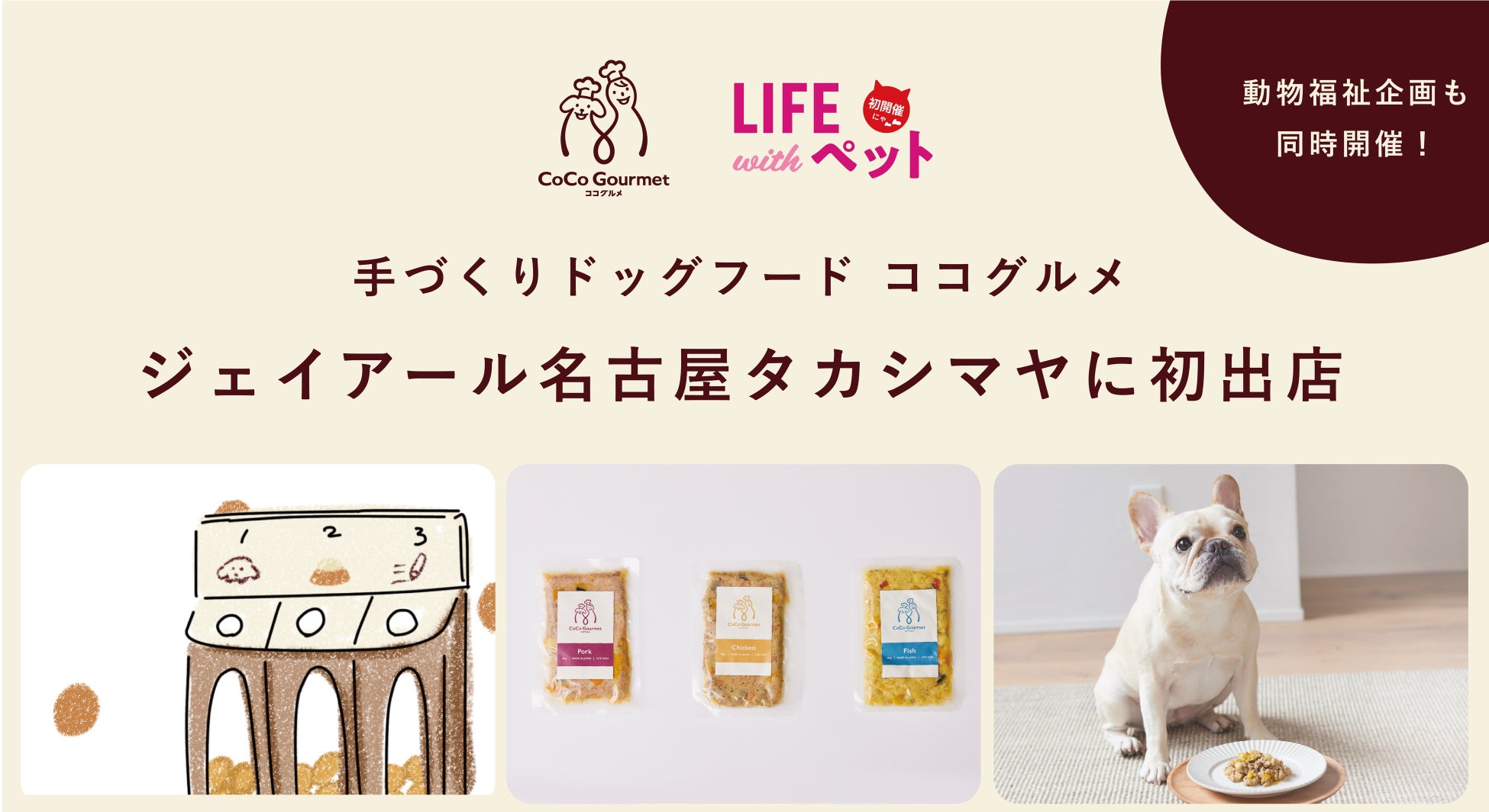 愛犬愛猫の“ライフディッシュ”を手がける株式会社バイオフィリア(所在地:東京都目黒区/代表:岩橋洸太)が、手作りフレッシュフード売上・会員数No.1の「CoCo Groumet(以下:ココグルメ)」を、ジェイアール名古屋タカシマヤにて販売いたします。さらに売上の一部をSDGsプロジェクトへ出資する参加型企画を実施します。