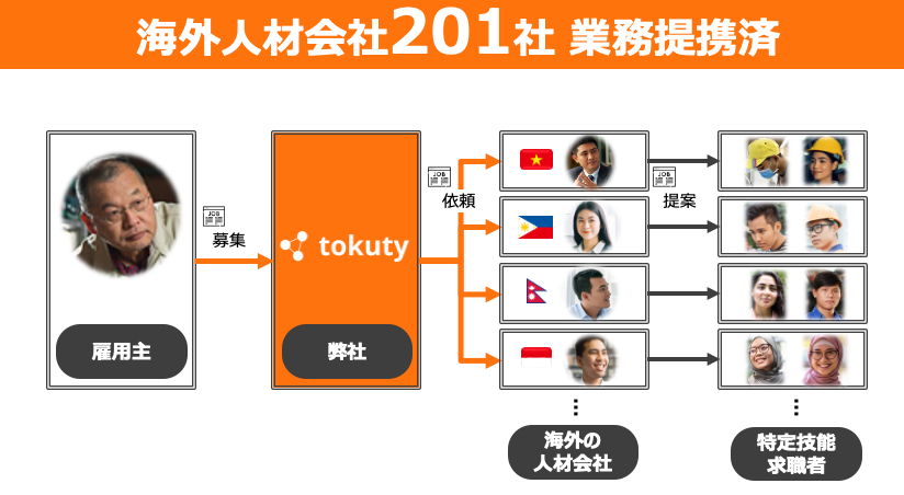 事業内容: 外国人特定技能人材のマッチングプラットフォーム「tokuty」の開発・運営