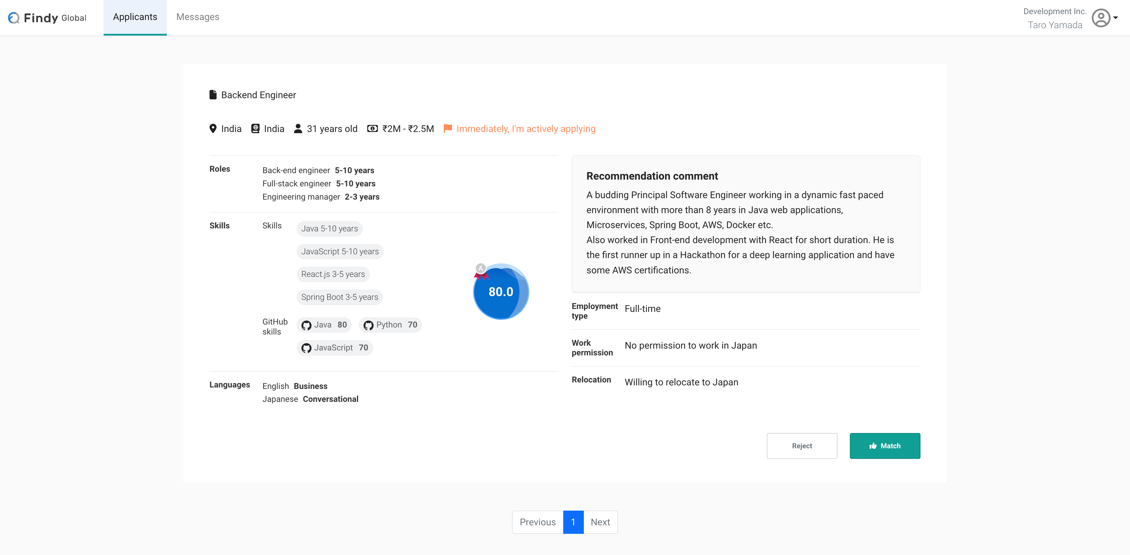 この度、国内向けに提供しているダイレクトマッチング機能をFindy Globalにも実装しました。