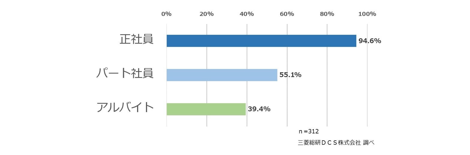 94.6%の企業が、実施するのであれば「正社員」を対象とすると考えています。「パート社員」や「アルバイト」のみを対象に考えている企業は2.56%にとどまり、非正規雇用社員向けの施策ではなく、実施するのであれば正社員を対象と考えている企業が圧倒的に多い結果となりました。
