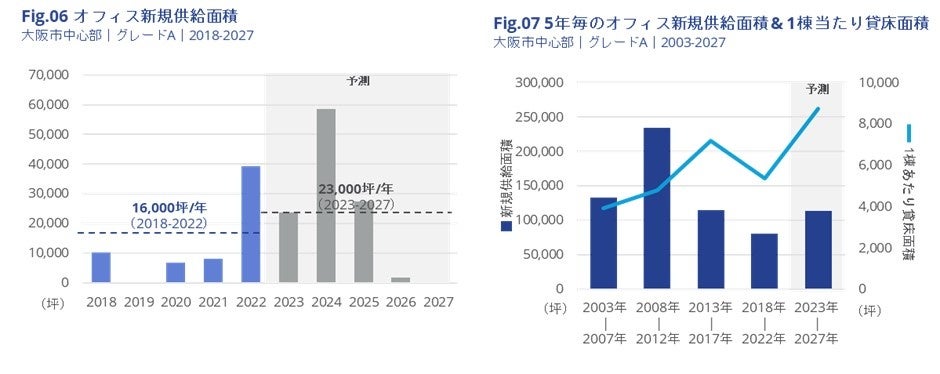 大手総合不動産プロフェッショナルサービス・投資運用会社であるコリアーズ・インターナショナル・ジャパン株式会社(代表:小笠原 行洋、本社:東京都千代田区、NASDAQ およびTSX:CIGI、以下コリアーズ・ジャパン)は、本日、「オフィス新規供給|2023 年~2027 年の新規供給の見通し|東京主要5 区・大阪市中心部」を発表しました。当レポートは、コリアーズ・ジャパンが、東京主要5 区(千代田区・中央区・港区・新宿区・渋谷区)のグレードA オフィスビル※1と大阪市のグレードA オフィスビル※2 の新規供給量※3 の見通しについて独自に収集したデータに基づいて分析したものです。