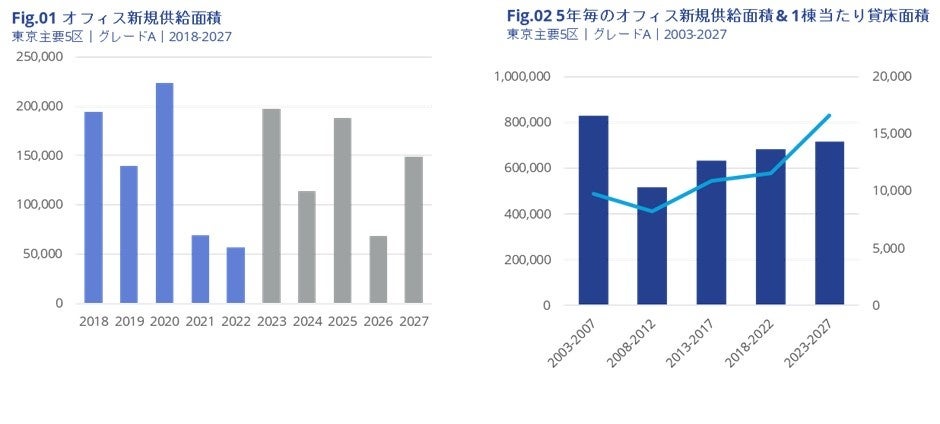 東京のオフィス新規供給量は増加傾向、新築オフィスは大型化の傾向も