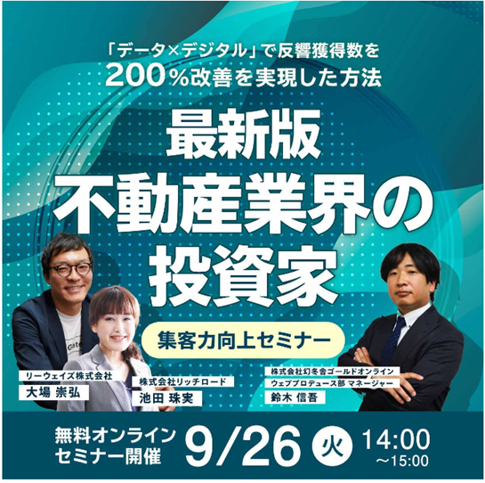 【反響獲得数を200%改善】幻冬舎ゴールドオンライン主催 「最新版 不動産業界の投資家集客力向上セミナー」に登壇します