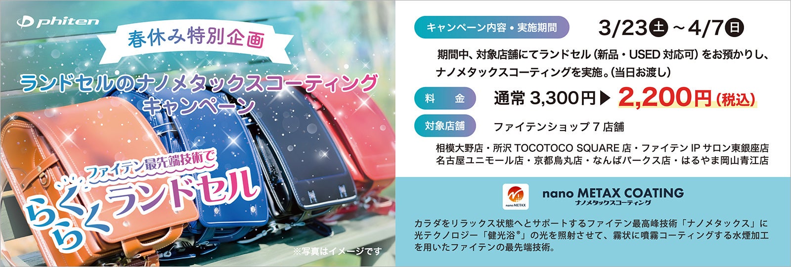 \春休み特別企画/ランドセルのナノメタックスコーティング キャンペーン実施のご案内