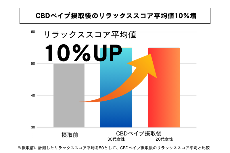 20代女性・30代女性ともに、CBDベイプ吸引後のリラックス平均値は10%も増加しました。