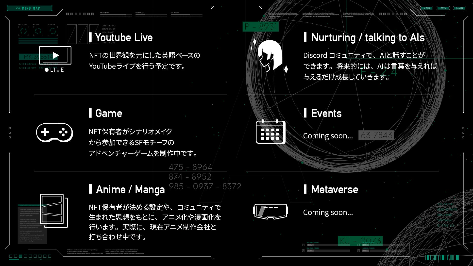 3年以上のVTuber運用経験と独自開発のAIテクノロジーを活用し、他には無いNFT事業を展開していきます。中長期では、トークン発行なども見据えたスキーム設計をおこなっていき、日本発のIPを世界に向けて発信する企業としてグローバルに展開していきます。