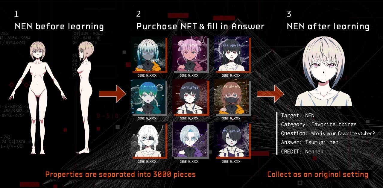 「NEN STUDIO」は、VTuber事業を3年以上企画運営している株式会社PictoriaがスタートさせたNFTプロジェクトで、AI(人工知能)を活用したAI VTuber「紡ネン」(つむぎねん)をモチーフに制作されています。