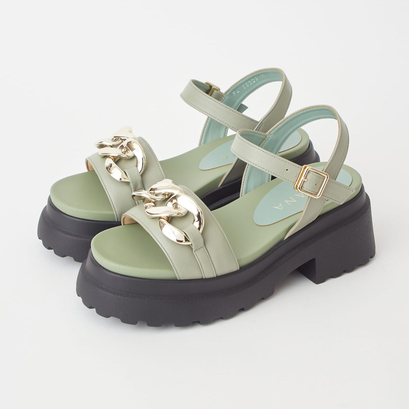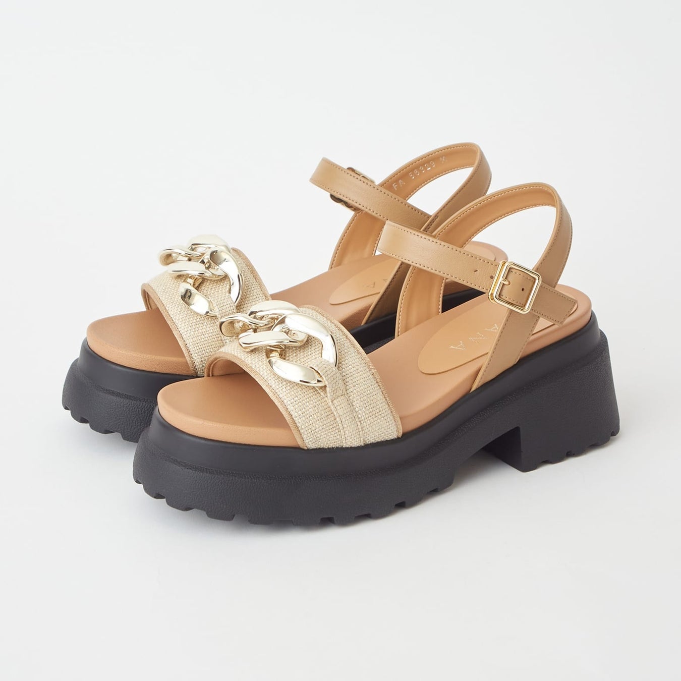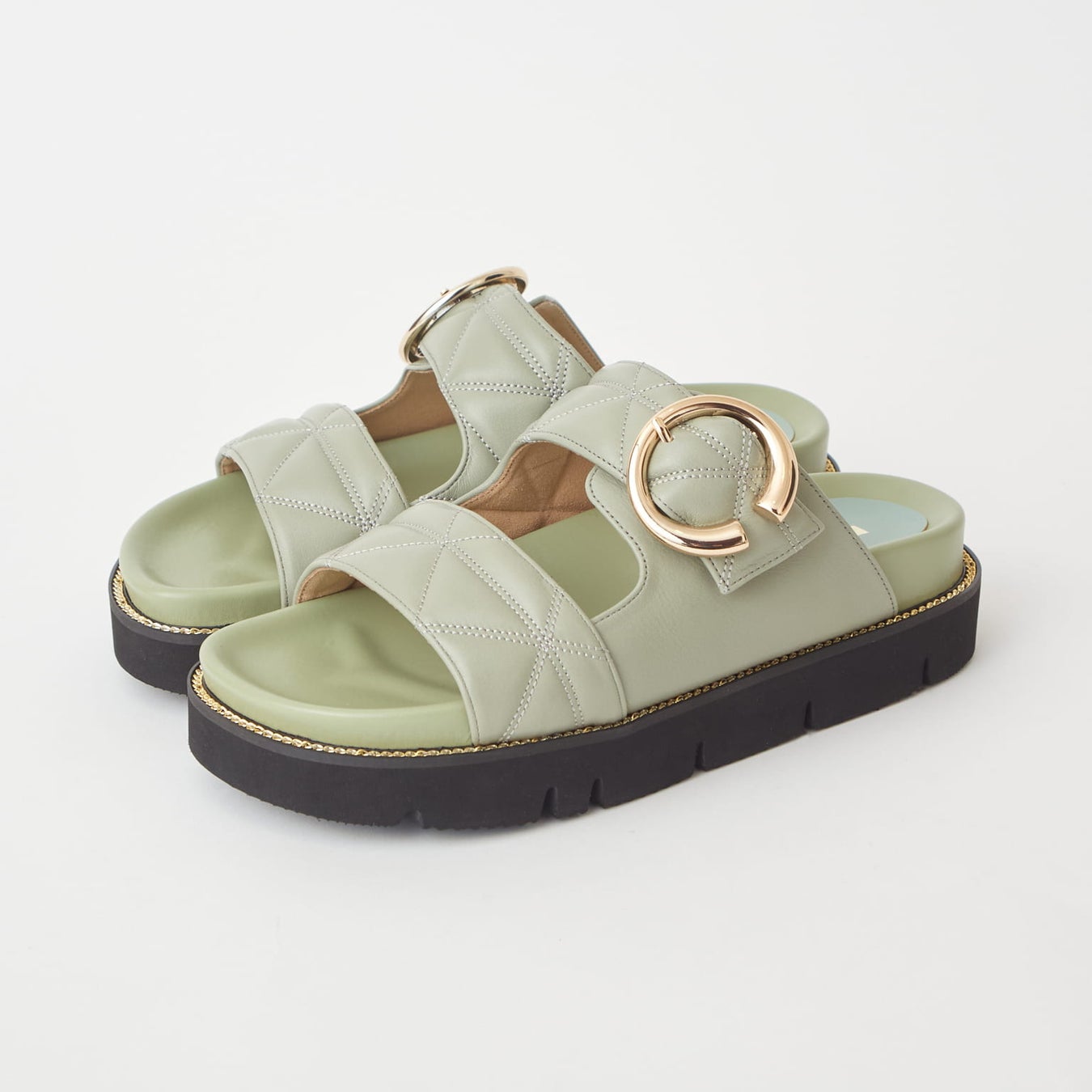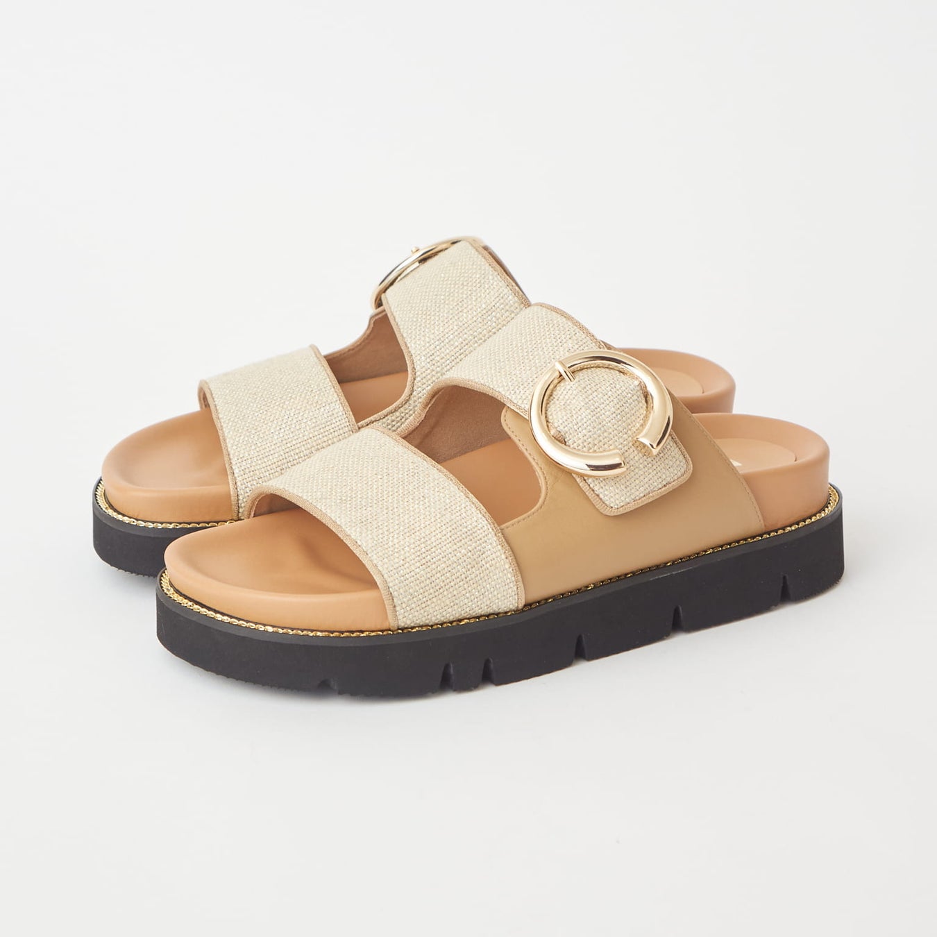 ニュアンスカラーの展開でより優し気な印象に。大人が履きやすいボリュームサンダルです。